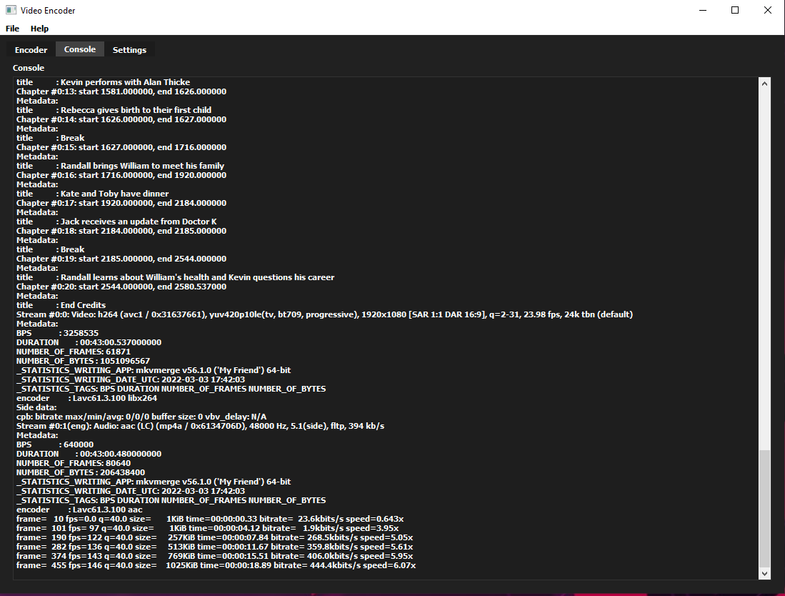 Live Encoding Progress Display: Users can monitor the encoding process in real time, viewing details such as elapsed time, frames per second (FPS), and estimated time remaining, which helps in managing time and resources effectively.
